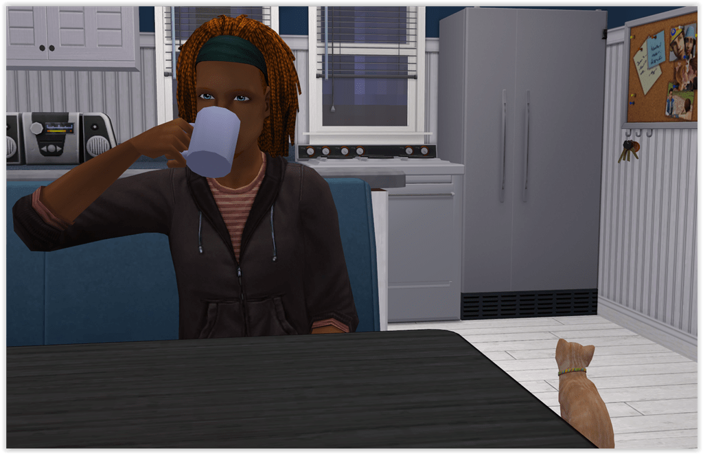 No wonder she immediately heads back to bed. Pao enjoys a quiet and peaceful evening with Tabby’s howling accompanying the radio music.