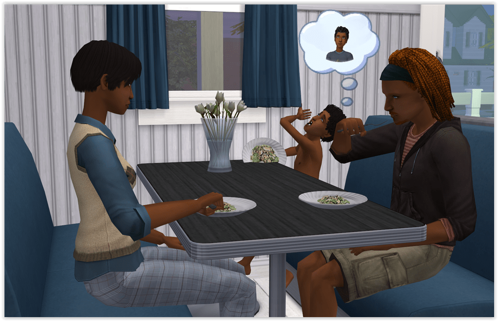 Andrea spends the whole day skilling, so it’s just Pao and Rufus (and Tabby of course). The manage to squeeze in some bonding time over “dinner”.